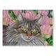 Maine Coon Cat and Pink Tulips