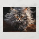 A close-up portrait of a Maine Coon cat with striking orange eyes, captured in a dramatic pose. The cat's long, flowing fur is blown by an unseen wind, creating a sense of motion and energy. The cat's gaze is intense and focused, suggesting a sense of alertness and power. The background is a dark, blurred expanse, highlighting the cat's features and creating a sense of depth. Ideal gift for Maine coon lovers.
