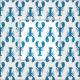 Crisp white fabric patterned with hand drawn blue lobsters