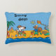 The cushion is small to medium sized. It can be washed. It is well constructed. The material used is pleasant and feels decent quality. It has a very slight plush feel which is good. It is well labelled and its care clearly stated. Theres nothing not to like about it. All in all a good item. The deduction of one star overall is due to long delays in delivery to the UK. It's not clear if this was due to Zazzle or somewhere else in the chain as I did not receive status updates of dispatch or progress. I cannot comment anymore on that other than to say that was our experience but it may not be the same for you. The printing was surprisingly close to what we were expecting. Its an art piece and on material so its hard to assess the precision of printing but it seems close to the original. The soft lines are reproductions of the original. The colour is a fair reflection of the painting. This was printed in the US and it looks like US quality. No issues.