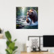 large bear is depicted in a painted art piece, holding a fresh fish firmly in its mouth. The bears powerful presence and natural hunting instincts are portrayed vividly in the artwork.