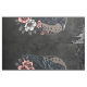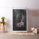 Majestic black raven sitting proudly amidst a lush cluster of delicate flowers. The raven, with its pointed beak and piercing red eye, exudes a mysterious aura. Its feathers are meticulously detailed in a realistic style, highlighting the texture and shine of its plumage. Around it unfolds a harmonious interplay of delicate flowers in soft pink and white tones. The petals of the flowers are soft and delicate, they almost seem to whisper in the soft light. This contrasting composition between the powerful raven and the fragile flowers creates a fascinating balance between strength and grace,
