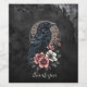 Majestic black raven sitting proudly amidst a lush cluster of delicate flowers. The raven, with its pointed beak and piercing red eye, exudes a mysterious aura. Its feathers are meticulously detailed in a realistic style, highlighting the texture and shine of its plumage. Around it unfolds a harmonious interplay of delicate flowers in soft pink and white tones. The petals of the flowers are soft and delicate, they almost seem to whisper in the soft light. This contrasting composition between the powerful raven and the fragile flowers creates a fascinating balance between strength and grace,