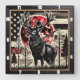 This square wall clock features a majestic deer with impressive antlers, standing prominently within a mystical forest scene. The artistic design showcases tall trees and a stylised moon or sun, creating a captivating woodland theme. This decorative piece brings vibrant nature art and a rustic yet modern style to any home decor.