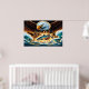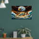 A painting of a powerful eagle in flight, holding a shimmering fish in its talons. The eagles sharp eyes lock onto its prey as it soars gracefully through the sky.