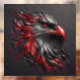 An abstract portrait of a magnificent eagle head in an artful style. The textured charcoal granite provides a striking backdrop as the head and feathers are artistically coloured in blood red and charcoal. The result is an excellent 3D effect, showcasing the regal beauty of this majestic creature.