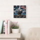 Majestic Eagle Over Mountains and American Flag Square Wall Clock