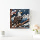 Majestic Eagle Perched on a Branch in Mountains Square Wall Clock