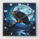 Majestic Eagle Perched Under Moonlit Sky Square Wall Clock