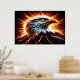 A captivating painting of an eagle in flight, with powerful lightning strikes illuminating the background. The eagles majestic wings are spread wide, showcasing its strength and grace amidst the electrifying storm.