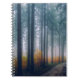Majestic, emotive photograph of a narrow path winding through a misty forest in the early morning sun.
