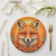 Majestic Fox Portrait Surrounded by Autumn Flowers Paper Plate