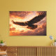 Elevate your space with this captivating canvas print of a golden eagle soaring through a dramatic sunset sky. Every detail of its dark and golden plumage is rendered photorealistically, creating a striking wall art piece for your office, living room, or as a premium gift. A creation by ZR21Designs, perfect for wildlife lovers and those who seek inspiring decor.