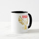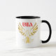 A striking, stylized graphic of a bald eagle with its wings spread wide, an iconic national symbol of the United States. The eagle is rendered in a gradient gold color, giving it a metallic, prestigious appearance, which is often used to represent power and strength. The bold, red text "USA" is featured prominently above the eagle in a strong, capitalized font. The design, in a vector style, evokes national pride and is commonly found on a variety of merchandise and official documents.