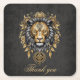 Majestic golden lion head with black mane. square paper coaster