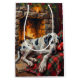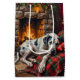 Capture the cozy, gentle spirit of the season with this majestic Great Dane design. This beautiful, photorealistic painting features a massive Harlequin Great Dane sleeping peacefully by a warm stone fireplace on a rustic plaid blanket. This heartwarming scene celebrates the 'gentle giant' of the dog world, making it a perfect piece for Great Dane owners and lovers of cozy, traditional Christmas settings. Ideal for high-quality blankets, pillows, custom ornaments, and gifts that bring warmth and grandeur to any home.