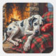 Majestic Great Dane Asleep by Fireplace Cozy Square Sticker