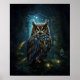 Majestic Great Horned Owl Glowing Night Scene Poster