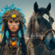 Majestic Horse And Young Native Woman Fantasy Portrait Tissue Paper.