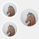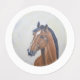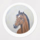 Majestic Horse Portrait is a refined close-up painting of a chestnut horse with a bold white blaze, created on a circular canvas with soft pale yellow tones, expressing elegance, strength, and calm beauty through warm colors and detailed brushwork.