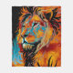 Experience the power and grace of this iconic lion design, aglow with vibrant colours. His fiery mane symbolises resilience against burning forests, standing as a majestic guardian at night, pledging eternal protection to the woods.