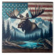 Majestic Moose Against Mountains and American Flag Tile