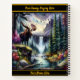 A magnificent moose stands gracefully near a tranquil waterfall, surrounded by vibrant autumn foliage and majestic pine trees. The landscape is illuminated by the soft glow of twilight.