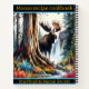 A magnificent moose stands proudly near a serene waterfall, surrounded by vibrant autumn foliage and towering trees in a picturesque forest setting, evoking a sense of wilderness and tranquillity.