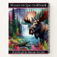 A magnificent moose stands proudly near a serene waterfall, surrounded by vibrant autumn foliage and towering trees in a picturesque forest setting, evoking a sense of wilderness and tranquillity.