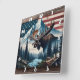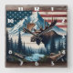 Majestic Moose in Front of Mountains and Flag Square Wall Clock