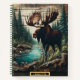 A majestic moose grazes peacefully near a tranquil river, surrounded by lush forest and vibrant greenery in a stunning natural setting.