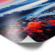 This vibrant painting captures the breathtaking beauty of Mount Fuji bathed in the warm glow of a sunset. The snow-capped peak contrasts with the fiery sky, creating a stunning and memorable image.