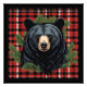 A beautiful, majestic Northern Black Bear set on a rustic red, black and white plaid background. The bear with it's strong, sleek features and rich black fur is the focal point of this design. The Bear's expression conveys a sense of confidence and calmness that adds to the rustic charm, contrasting beautifully against the plaid backdrop. This cottage country inspired design enhances the bear's natural beauty and would be perfect for any home or cottage decor.