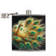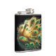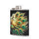 Majestic Peacock Displays Green and Yellow Plumage Hip Flask