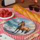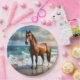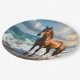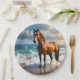 **"Majestic Stride: Proud Brown Horse on the Beach Paper Plate