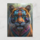 Majestic Tiger with Vibrant Tribal Face Paint Postcard