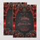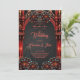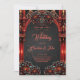 Majestic towers with dark flowers. The red towers and dark flowers symbolise the union of light and darkness, full of intensity and beauty, which perfectly captures the uniqueness of a Gothic wedding.