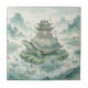 Majestic Turtle Pagoda Ink Art Tile
