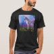I give wanted to give this a 4 instead of a 5 because these Basic DARK T0shirts run unexpectedly SLIM or Narrow. Which is great if you do not have a potbelly, but I have a paunch. It isn't the shirt's fault that I've got a beer belly. The design and shirt itself is a quality cotton shirt. The color is more of a deep purple, but still a very pretty color. The Basic DARK T-shirts run a bit SLIMMER than the Basic Ts. The neck is a fraction narrower (or seems to be narrower) also. I'm a paunchy middle-aged woman and my neck is 12 inches (31cm) thick and the neckline fell about the same as in the photo of the man, and I had the desire to tug it a bit. So if you're a thick necked man or like loose shirts, be aware these are slimmer shirts. Once I get rid of my lockdown paunch it'll look great. The shirt washed well in cold water with no apparent bleeding. We don't have a dryer, so it hung dry. Did not shrink. Love the colors and the design. The design looks smaller on my shirt than it does on the model on-line. But still, it looks good on the shirt. The printing looks as it does on the model, just the size seems fractionally smaller. Washed garment in cold water, hung dry and design appeared unaffected.