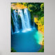 A majestic waterfall in the jungle, with crystal-clear water cascading into a lush green paradise. A breathtaking and refreshing escape.