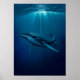 A breathtaking illustration of a whale gliding gracefully through the deep ocean as sunbeams pierce the water above. Perfect for ocean lovers, marine life enthusiasts, and nautical-themed wall art collections.