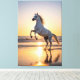 Capture the breathtaking beauty of nature with this stunning canvas print featuring a majestic white Arabian horse rearing gracefully on a golden beach at sunset. Bathed in warm cinematic light, the elegant horse reflects across the wet sand as ocean waves gently roll in behind it, creating a powerful and serene moment frozen in time.