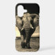 Stunning black and white photograph of a bull elephant in wild Africa with a sepia filter added to lighten the background and sharpen the contrasts.