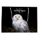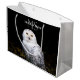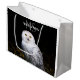 Animal portrait photograph of majestic snowy owl standing on a branch with a personalizable custom name monogram above.