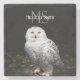 Animal portrait photograph of majestic snowy owl standing on a branch with a personalizable custom name monogram above.