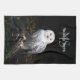 Animal portrait photograph of majestic snowy owl standing on a branch with a personalizable custom name monogram above.