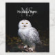 Animal portrait photograph of majestic snowy owl standing on a branch with a personalizable custom name monogram above.
