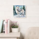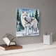 This image features a striking white wolf standing in a snowy forest. The wolf's thick fur is beautifully detailed, capturing the essence of its majestic and powerful presence. Surrounding the wolf are snow-covered trees and delicate snowflakes, adding to the serene and enchanting winter scene. The background showcases a clear, starry night sky, enhancing the overall magical and tranquil atmosphere of the image. This captivating depiction of a wolf in its natural habitat makes for a stunning and unique clock design.