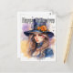 This creative Halloween postcard features an illustration of a nefarious looking witchy woman, with long wavy hair. This postcard would make a truly wonderful Halloween greeting for friends and family.