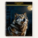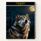 A wolf stands proudly on a sketchbook, its head raised in a soulful howl under the luminous glow of a full moon